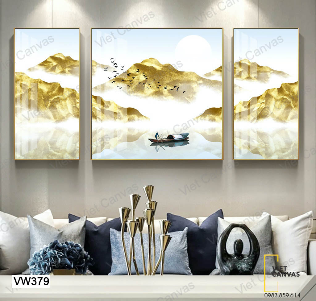 Bộ 3 Tranh Thuyền, Sông Và Núi - VW379