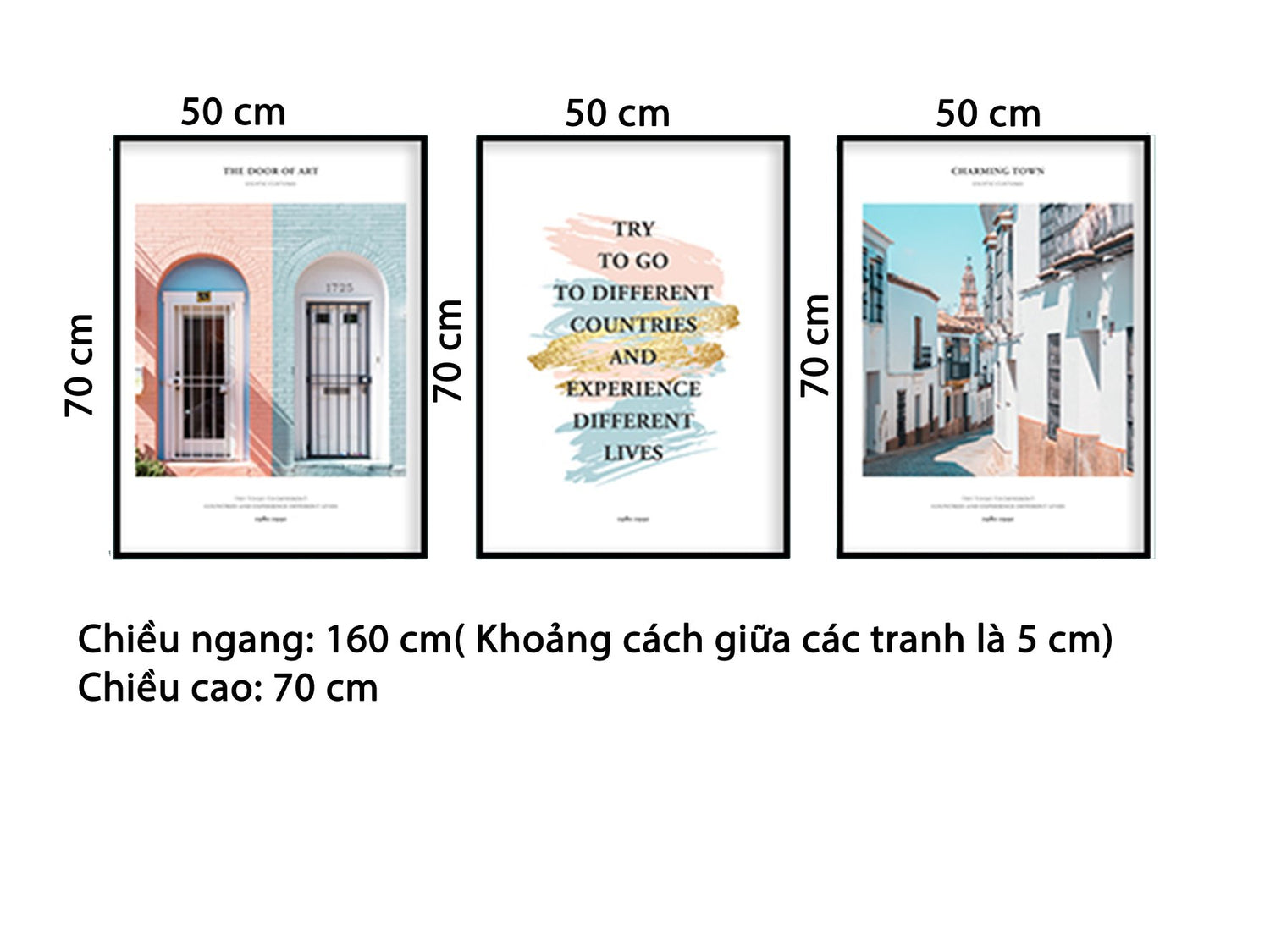 Bộ 3 Tranh Khu Nhà, Khung Cửa Sổ Và Quotes - HD515