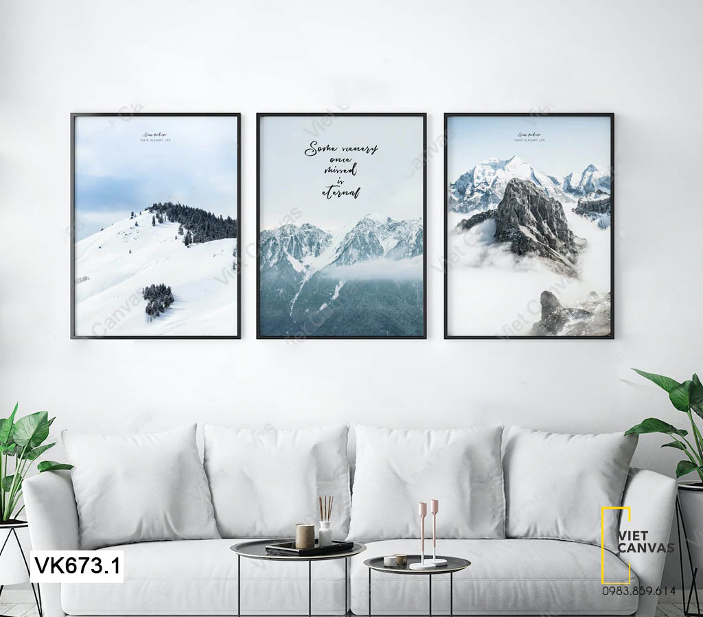 Bộ 3 Tranh Tuyết Phủ Trắng Núi - VK673.1