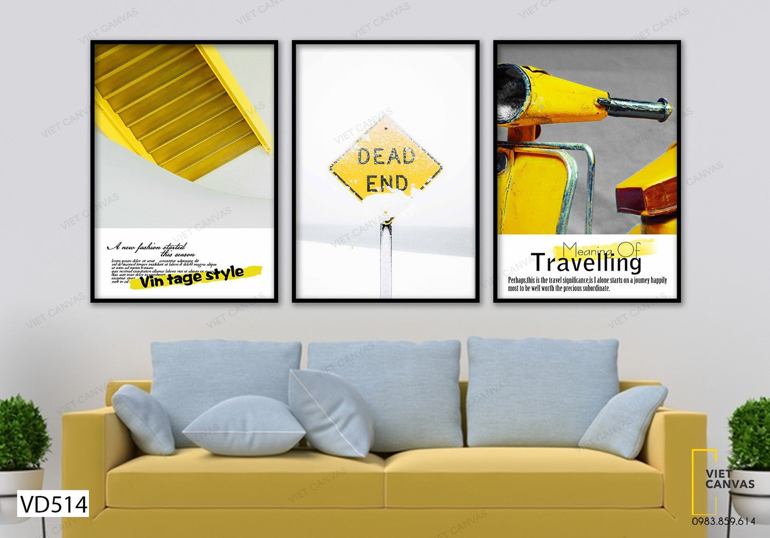 Bộ 3 Tranh Bậc Cầu Thang, Xe Máy Và Bảng Dead End - VD514