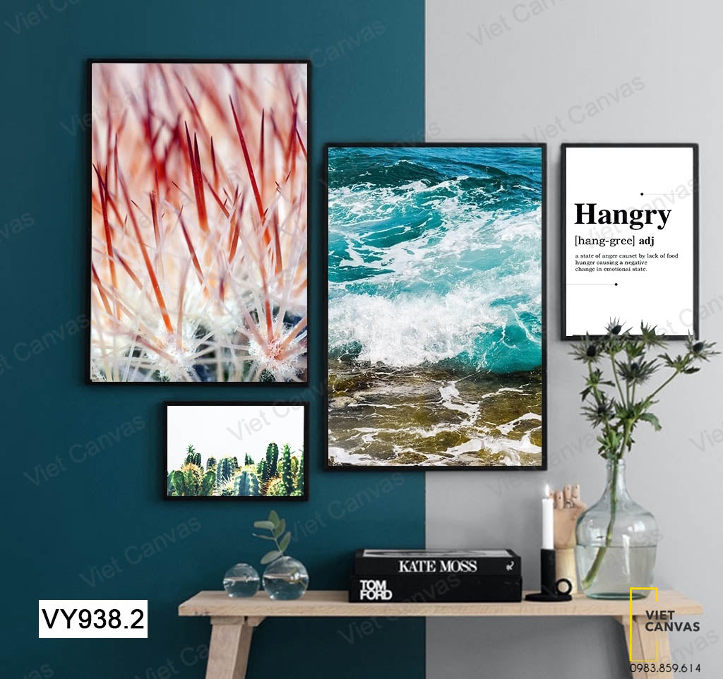 Bộ 4 Tranh Xương Rồng, Biển Cả Và Quotes - VY938.2