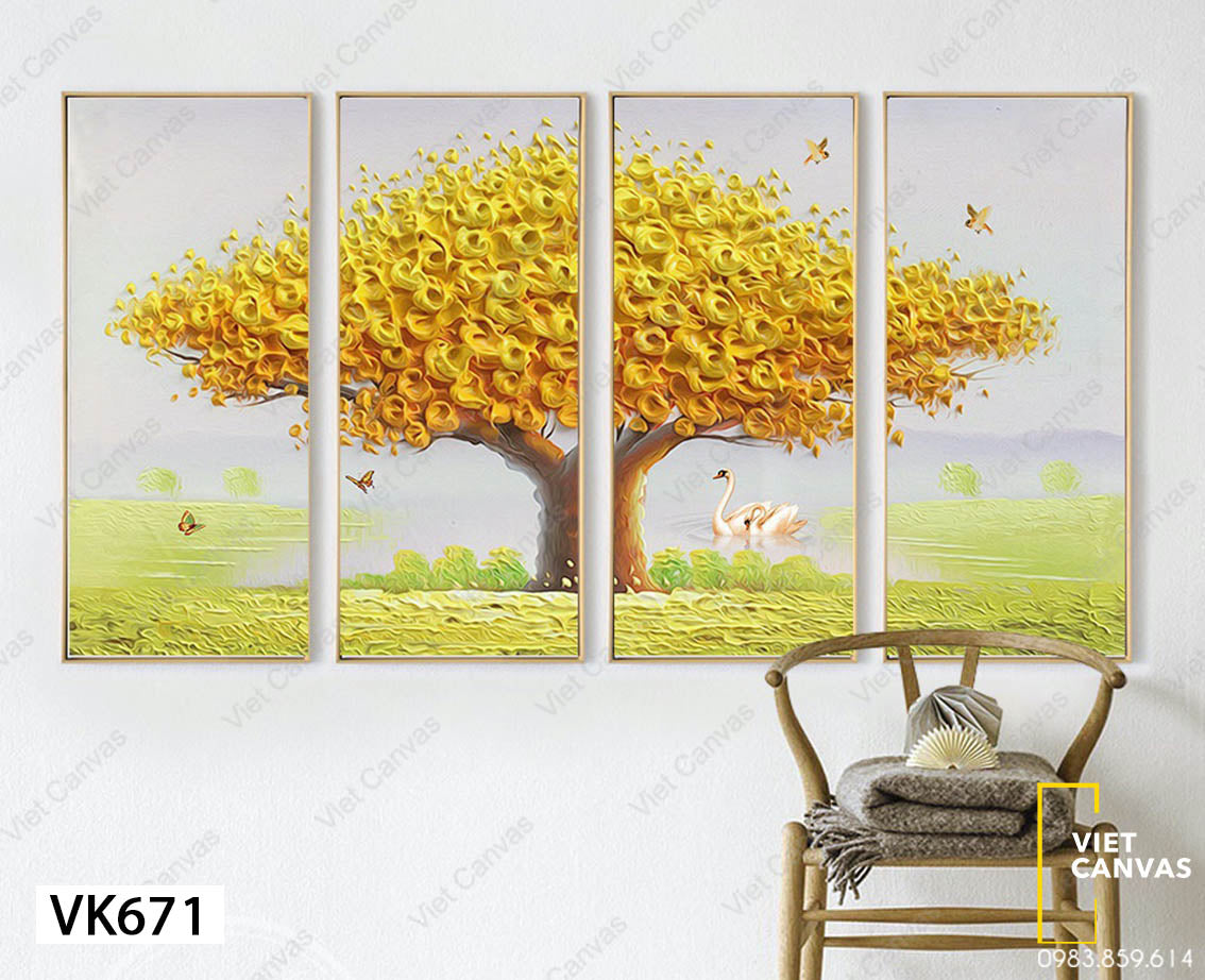 Bộ 4 Tranh Cây Cổ Thụ Lá Vàng - VK671