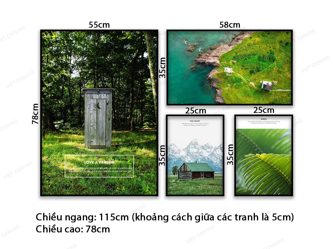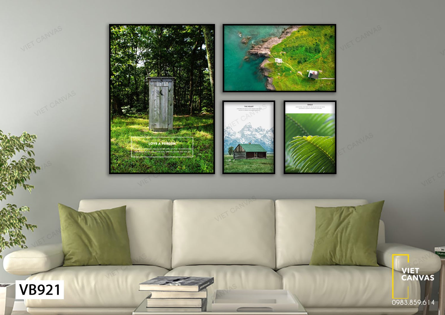 Bộ 4 Tranh Màu Xanh Của Thiên Nhiên Và Ngôi Nhà - VB921