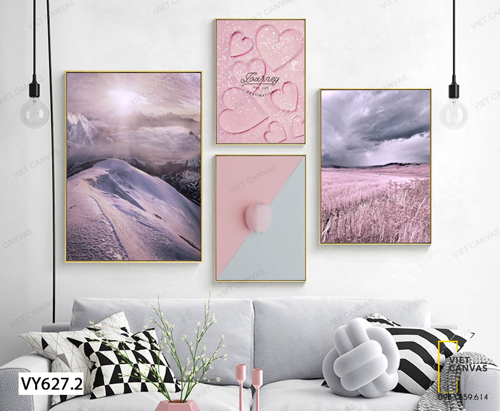 Bộ 4 Tranh Cánh Đồng, Quả Táo, Trái Tim Và Đỉnh Núi - VY627.2