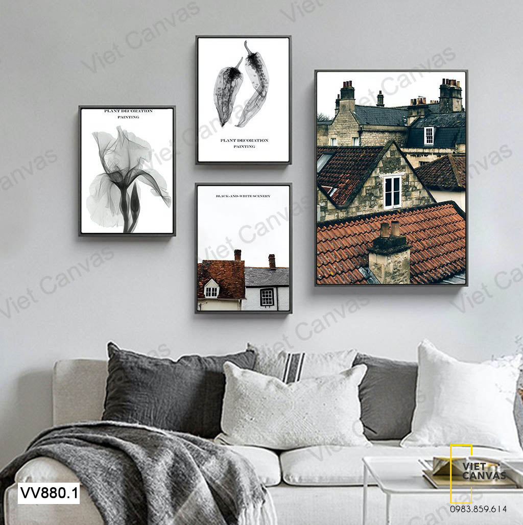 Bộ 4 Tranh Những Mái Nhà Và Hoa - VV880.1