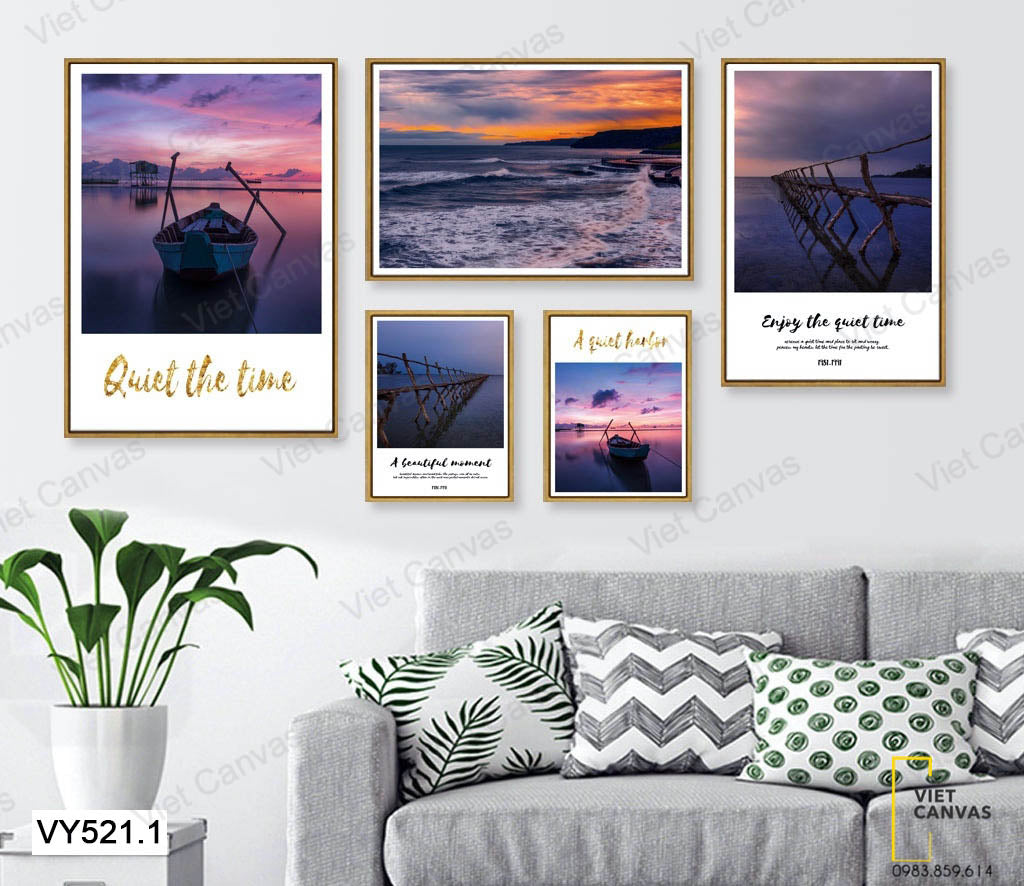 Bộ 5 Tranh Biển Và Thuyền Chiều Hoàng Hôn - VY521.1