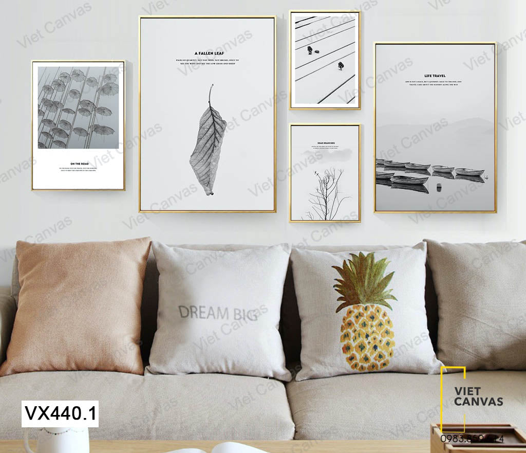 Bộ 5 Tranh Cành Khô, Lá Cây Và Hồ Nước - VX440.1