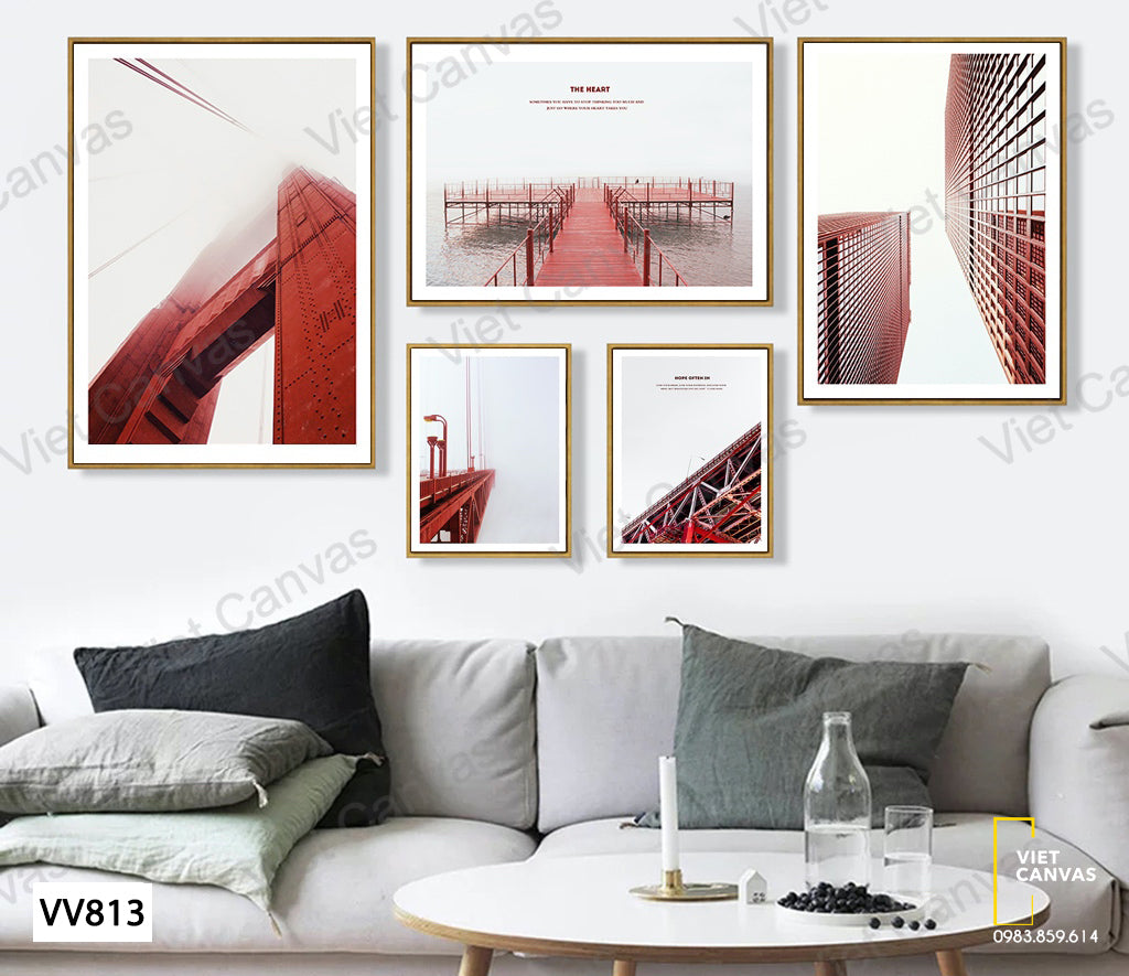 Bộ 5 Tranh Cây Cầu Và Tòa Nhà Cao Tầng - VV813
