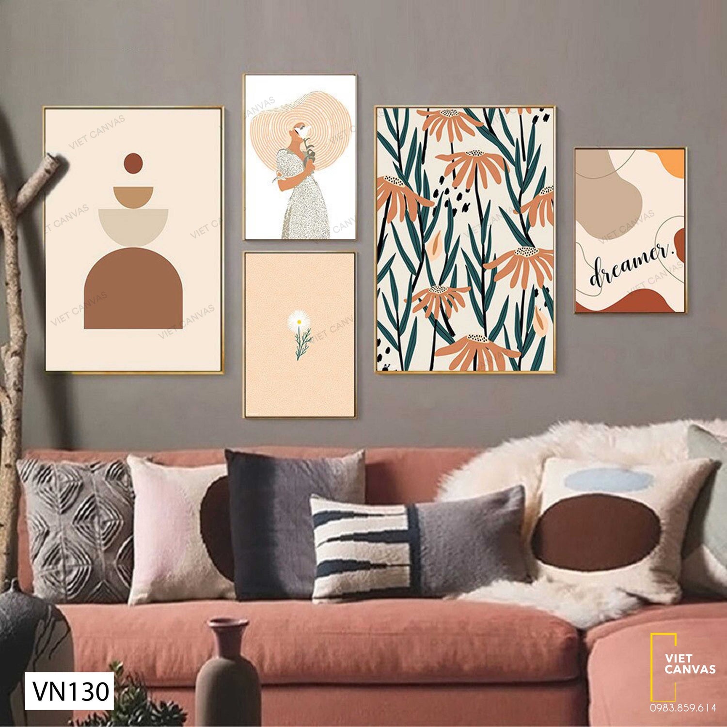 Bộ 5 Tranh Cô Gái Và Hoạ Tiết Tối Giản - VN130