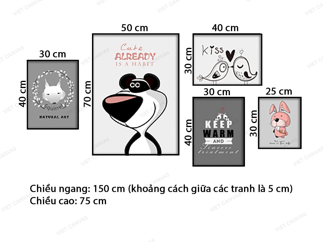 Bộ 5 Tranh Hoạt Hình Động Vật Cute - VK023.1