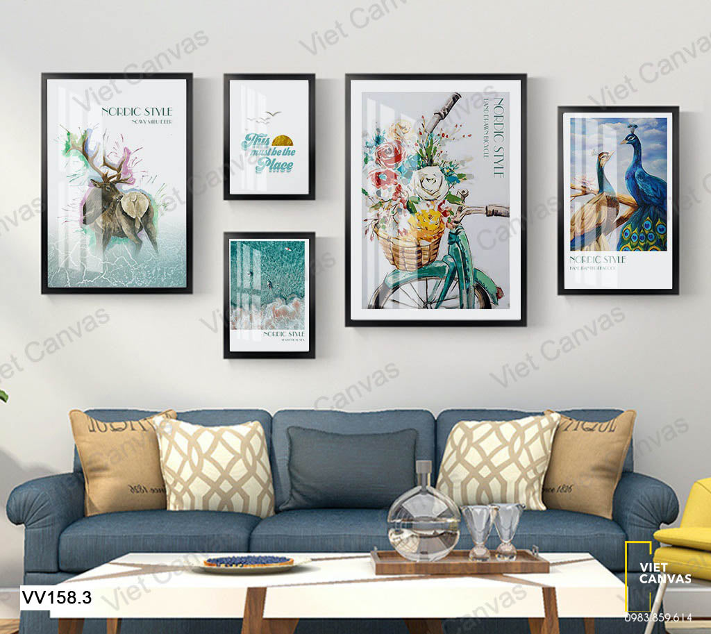 Bộ 5 Tranh Hươu Và Giỏ Xe Hoa - VV158.3