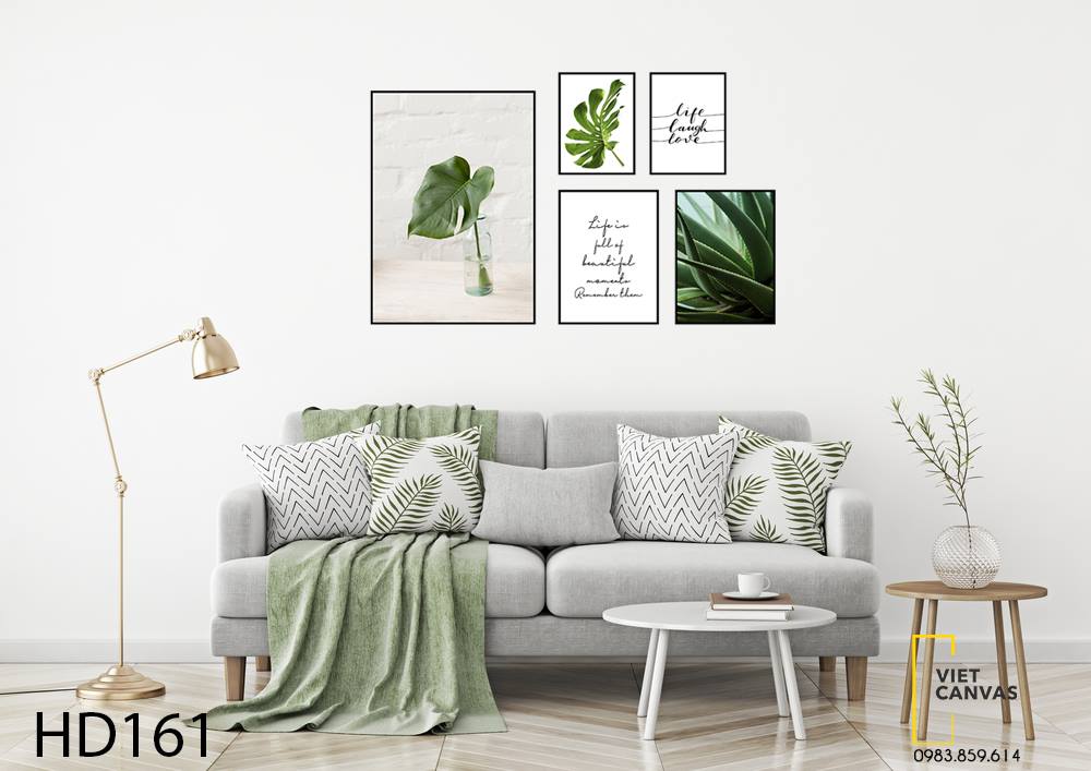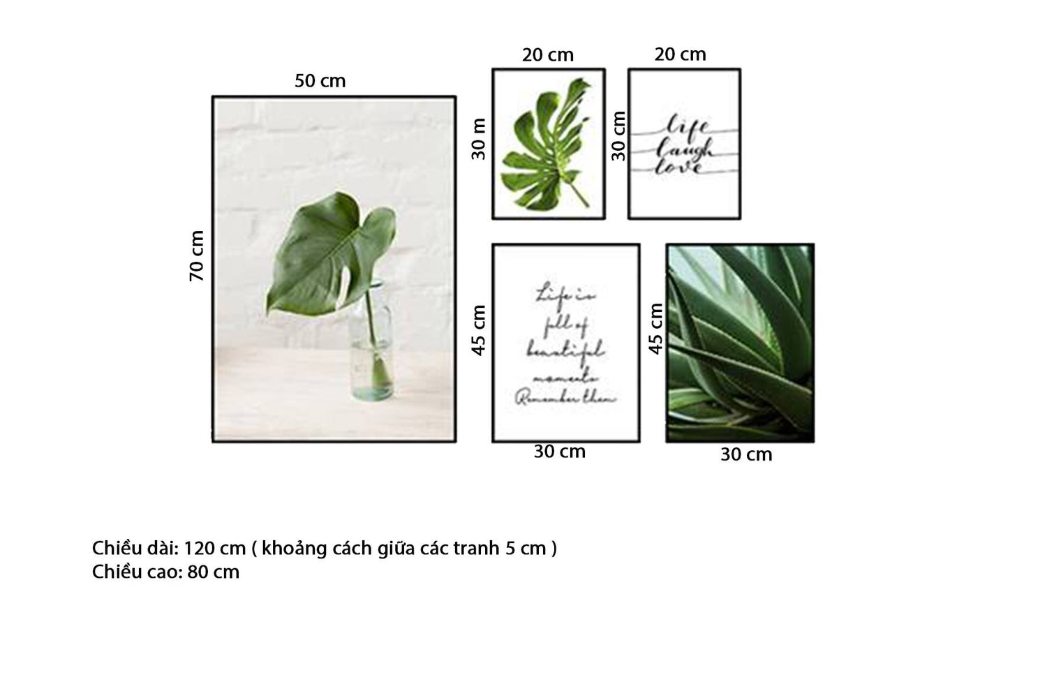 Bộ 5 Tranh Lá Cây, Nha Đam Và Quotes - HD161