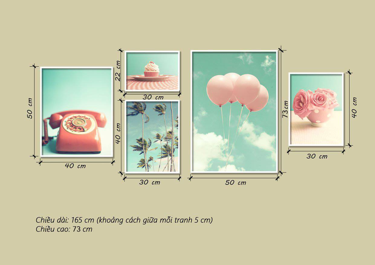 Bộ 5 Tranh Cây, Điện Thoại, Chiếc Bánh, Bong Bóng Và Hoa Hồng - HD119