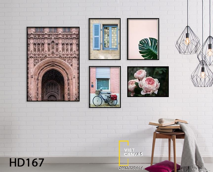 Bộ 5 Tranh Chiếc Xe, Khung Cửa Sổ, Lá Cây, Hoa Và Tòa Nhà Cổ Điển - HD167