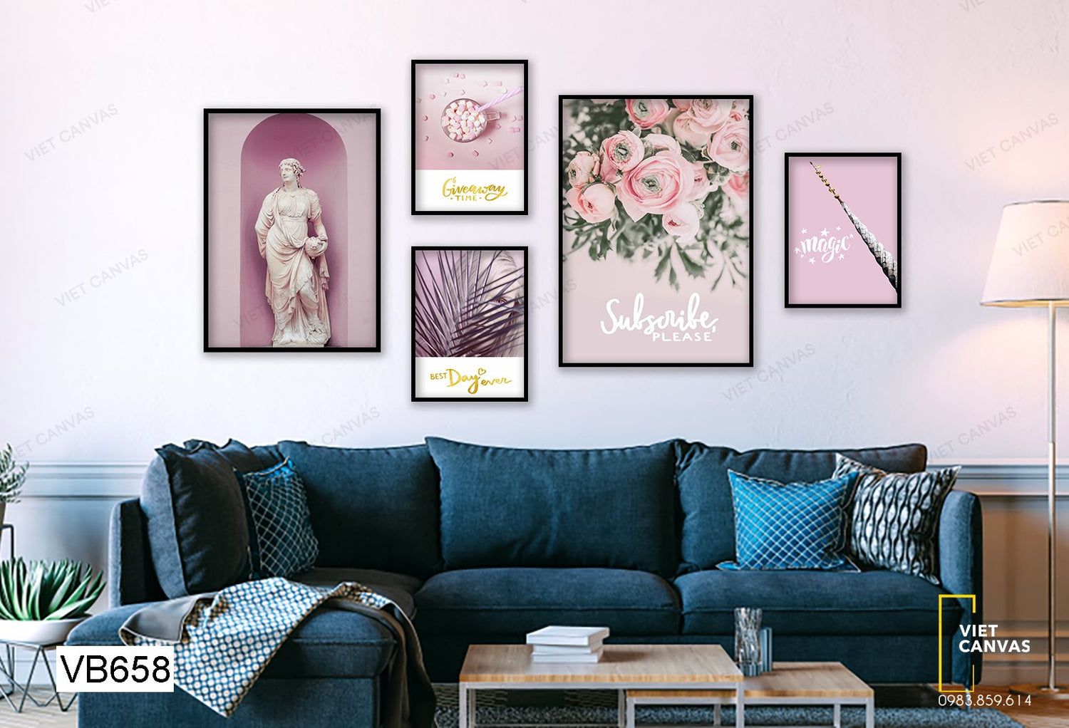 Bộ 5 Tranh Bức Tượng, Hoa Hồng, Hoa Lá Và Những Viên Đá - VB658