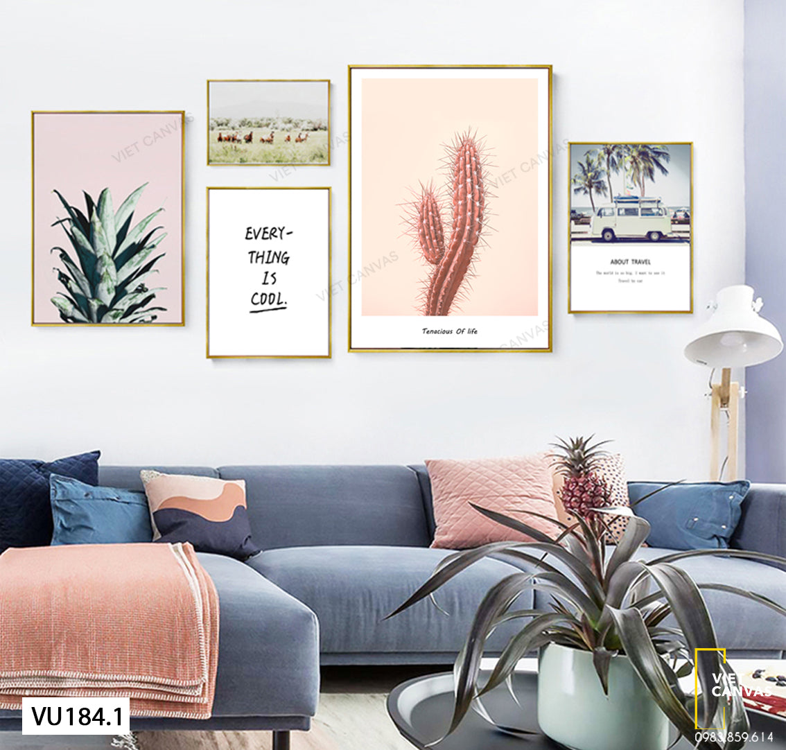 Bộ 5 Tranh Quotes Ngọn Dứa, Xương Rồng Và Cây Dừa - VU184.1