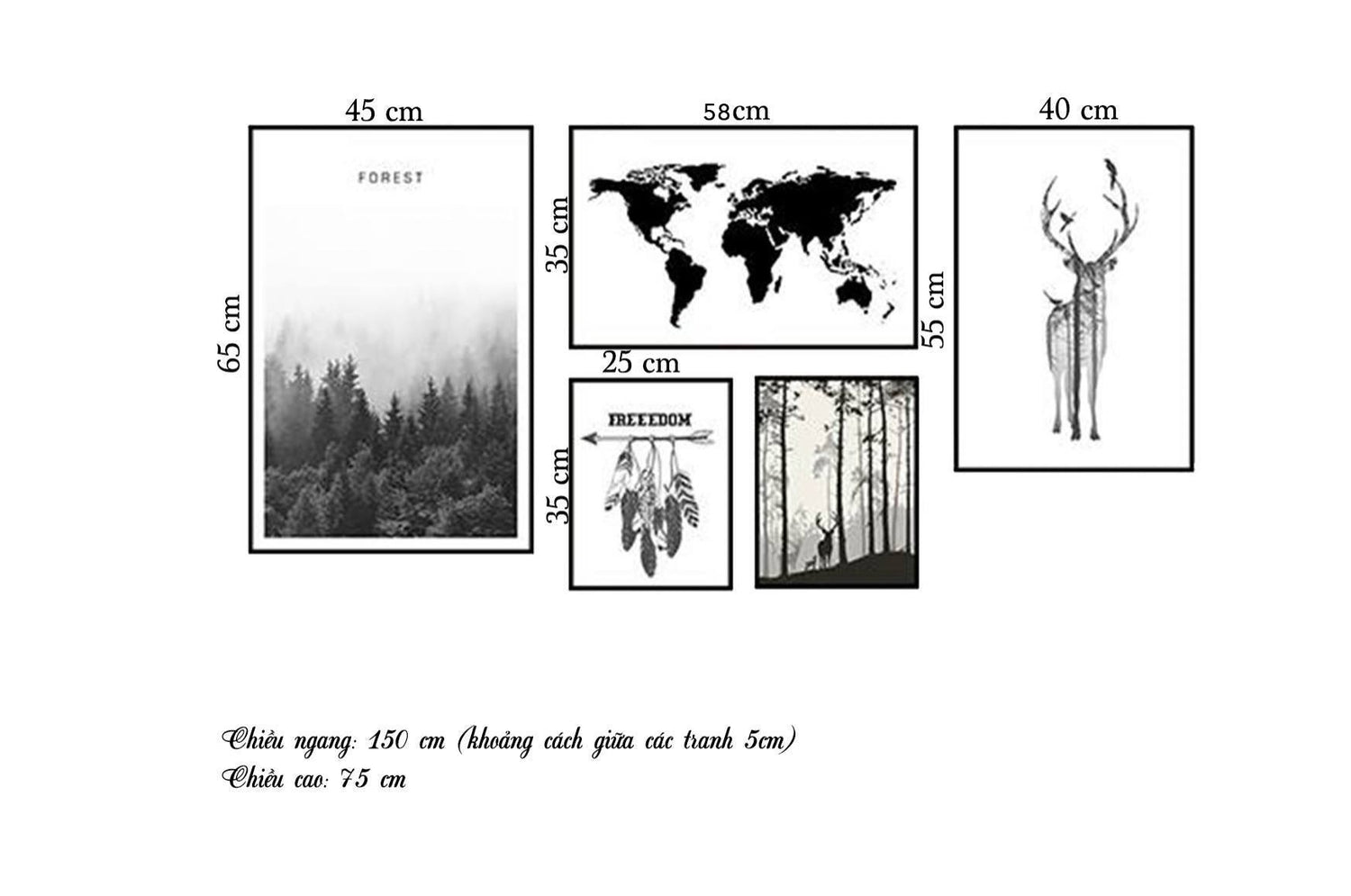 Bộ 5 Tranh Hươu, Khu Rừng Và Bản Đồ - HD127