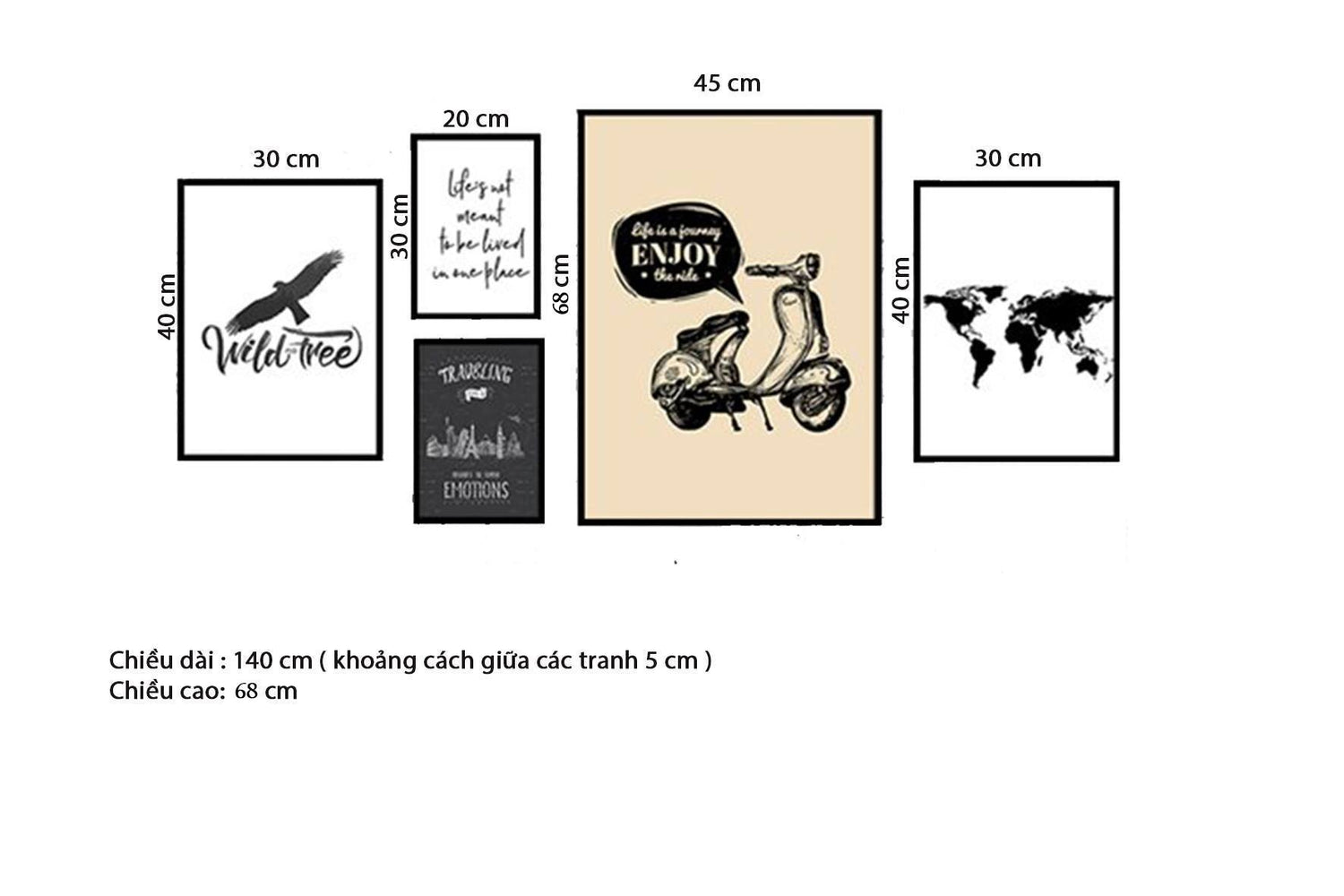 Bộ 5 Tranh Vespa, Bản Đồ Và Quotes Cổ Điển - HD162