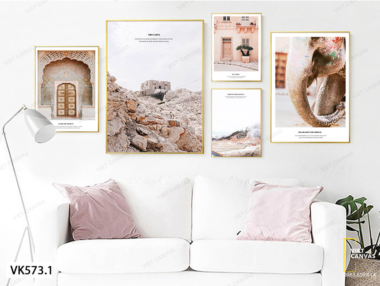 Bộ 5 Tranh Voi, Tảng Đá Và Cổng Nhà - VK573.1