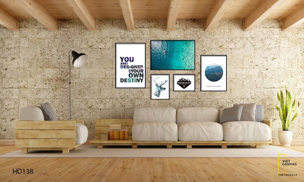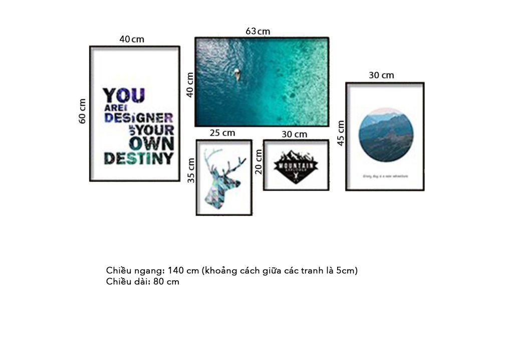 Bộ 5 Tranh Biển, Đồi Núi, Hươu Và Quotes - HD138