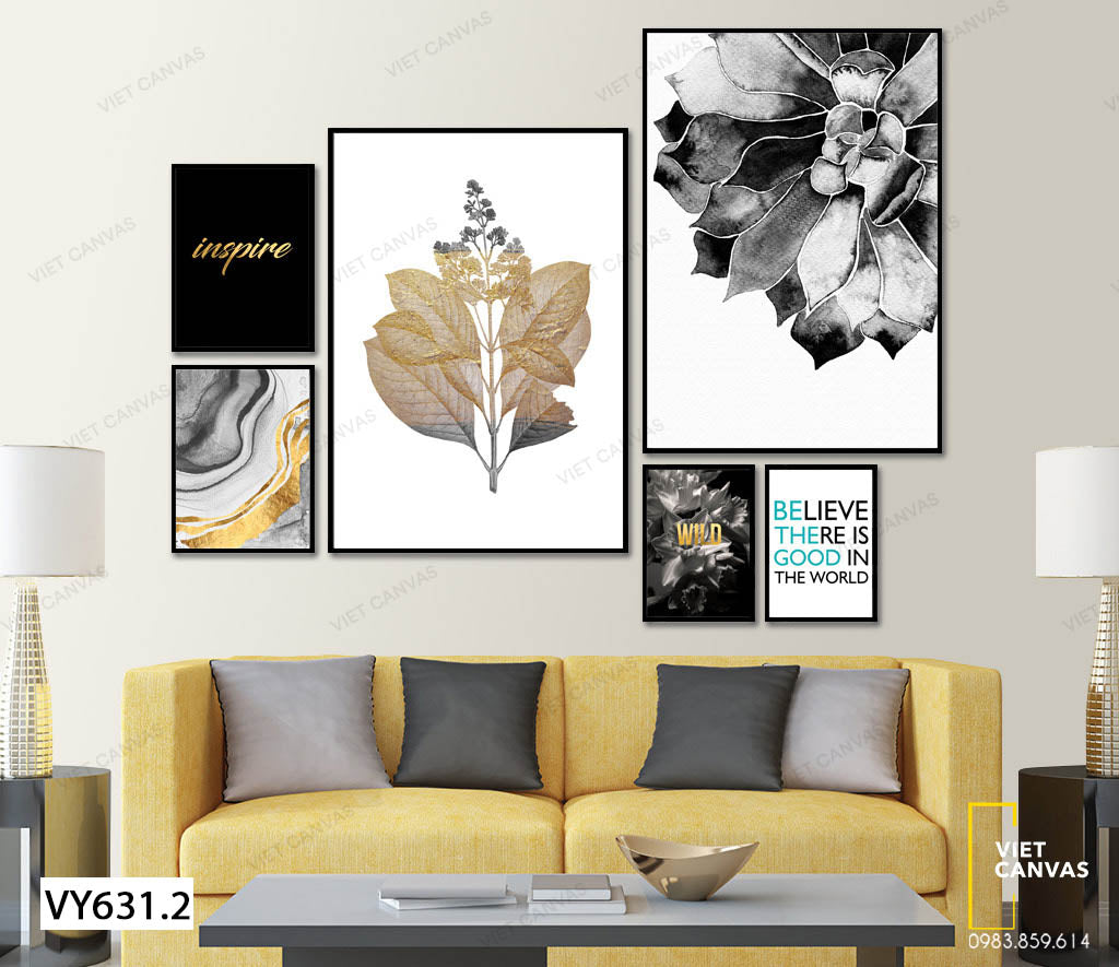Bộ 6 Tranh Lá Cây, Sen Đá Và Quotes - VY631.2