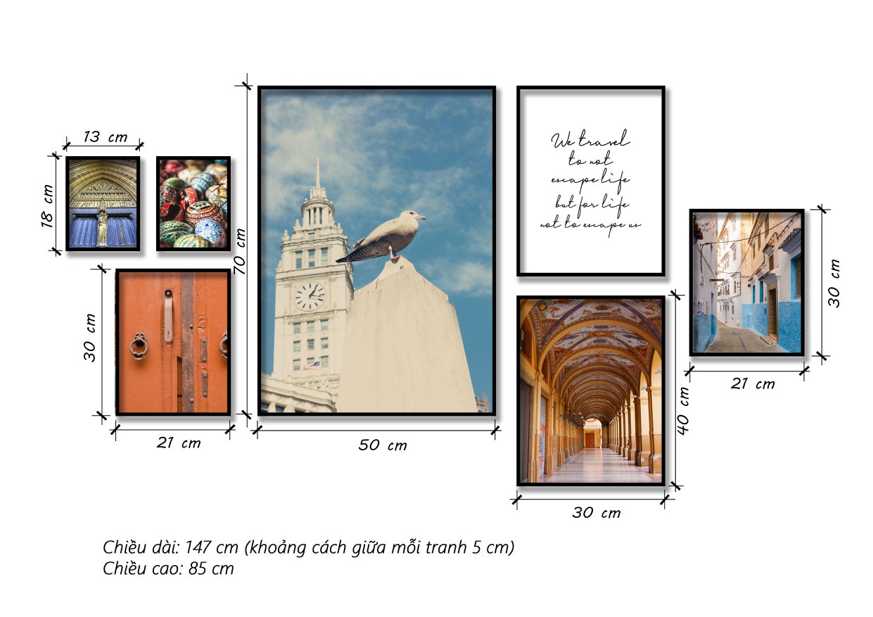Bộ 7 Tranh Khu Phố, Hành Lang, Tháp Đồng Hồ Và Quotes - HD166