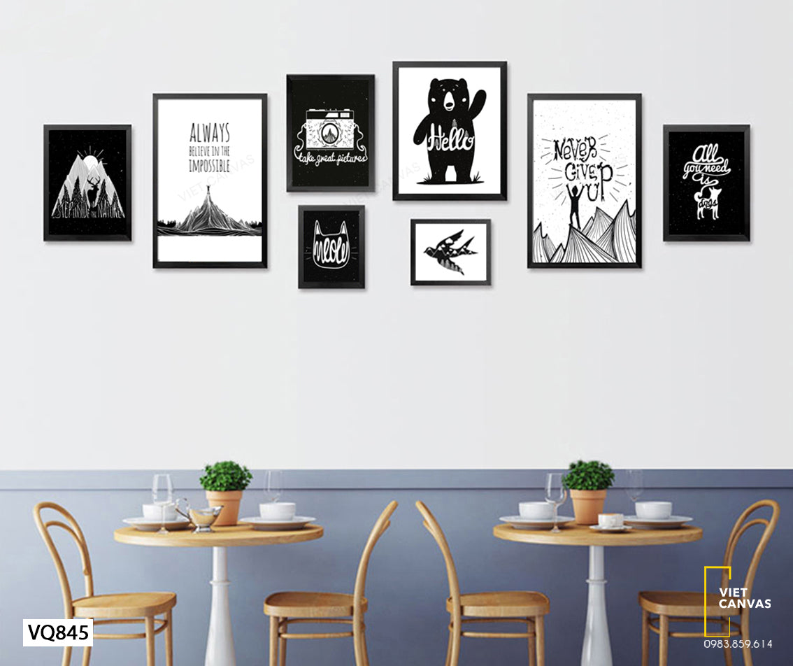 Bộ 8 Tranh Gấu, Máy Ảnh Và Quotes - VQ845