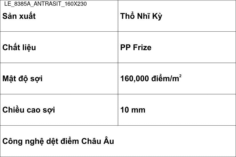 Thảm Sợi Ngắn - LE_8385A_ANTRASIT_160X230