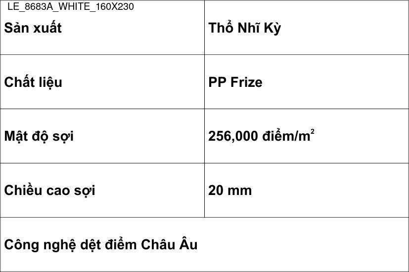 Thảm Sợi Ngắn - LE_8683A_WHITE_160X230