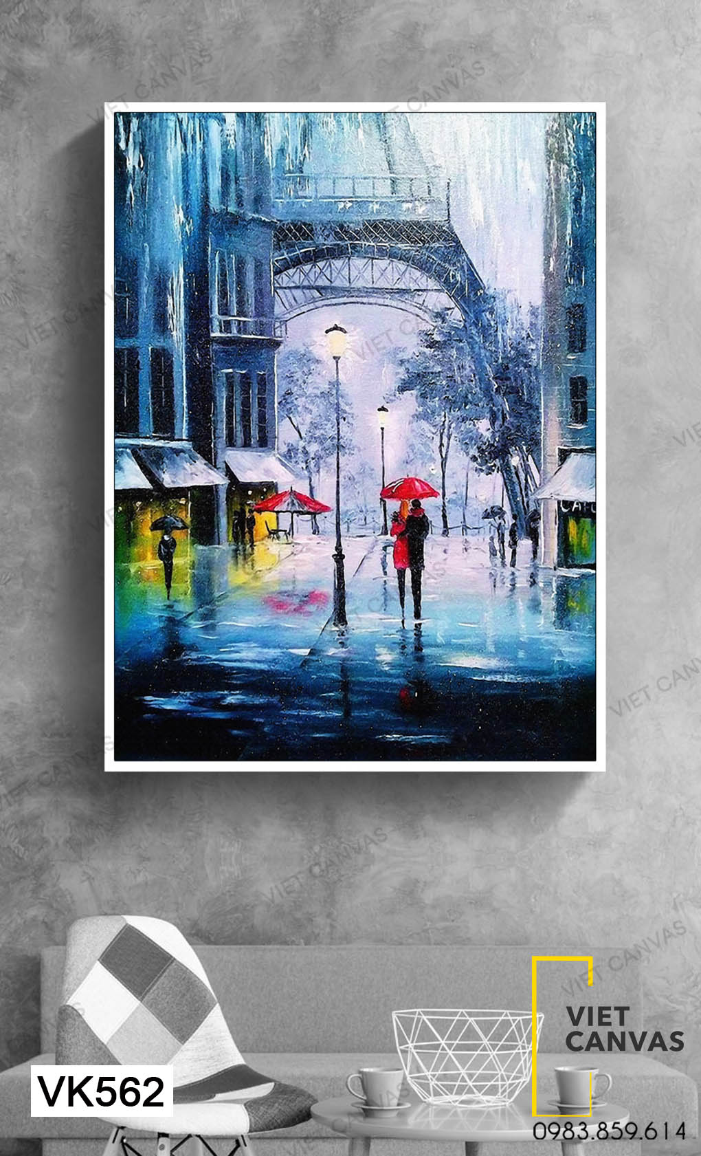 Tranh Cặp Đôi Tản Bộ Dưới Mưa - VK562