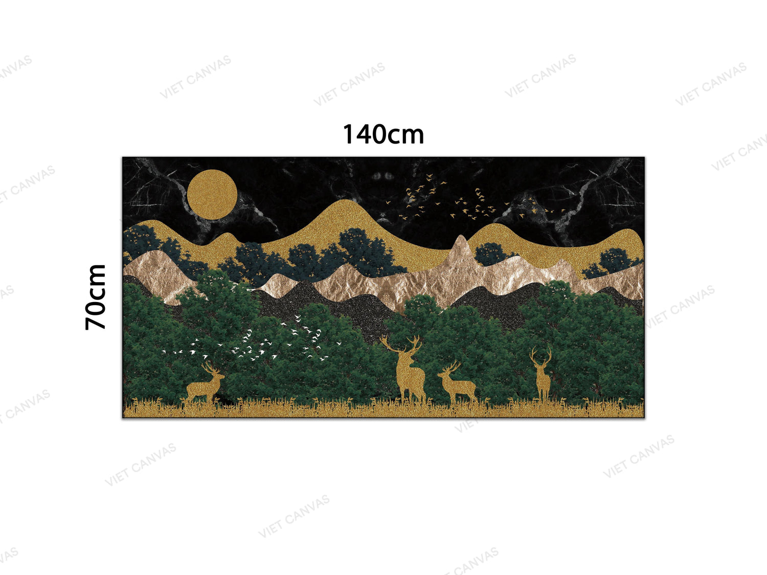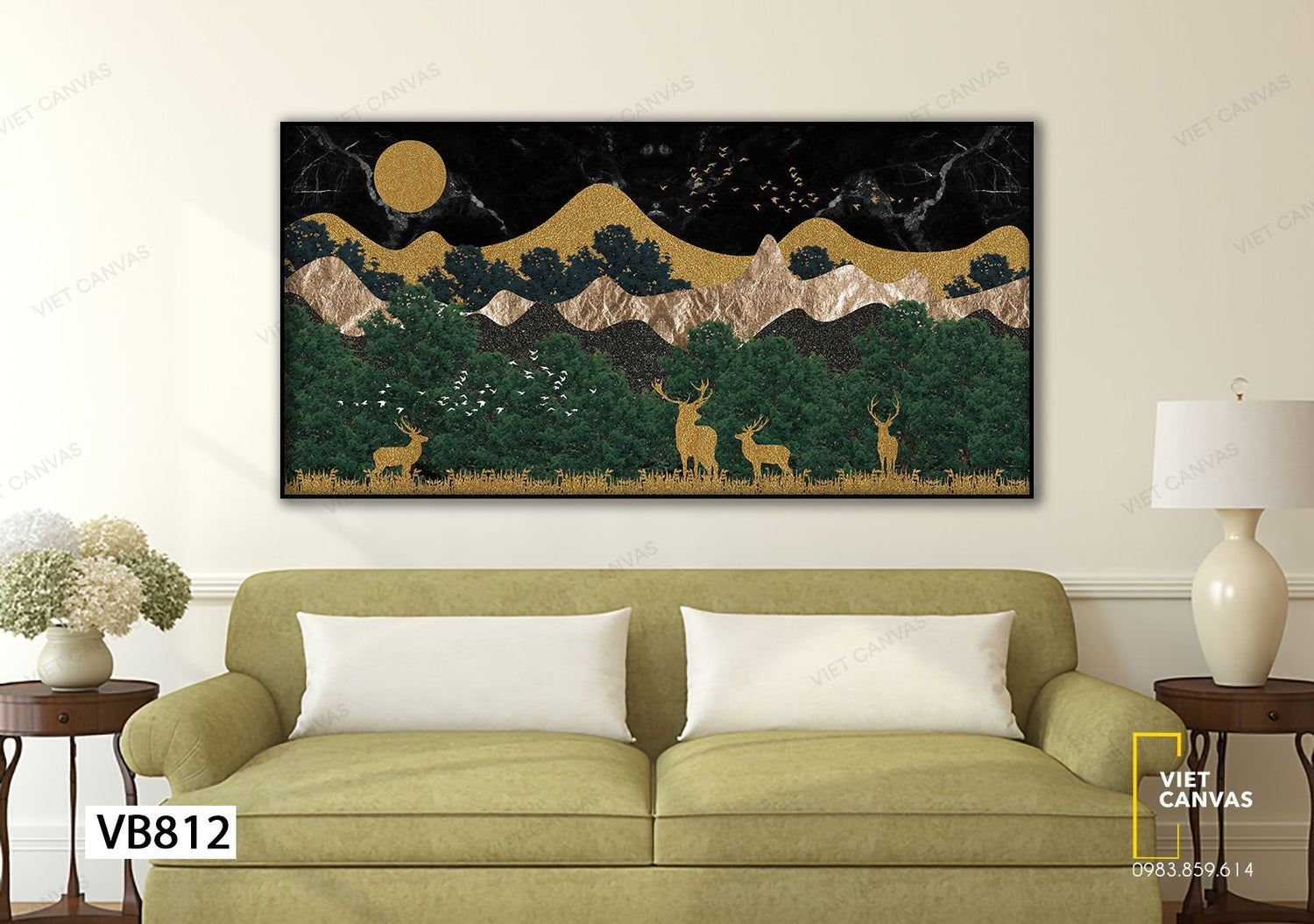 Tranh Đàn Hươu Ngắm Trăng Cùng Núi Rừng - VB812