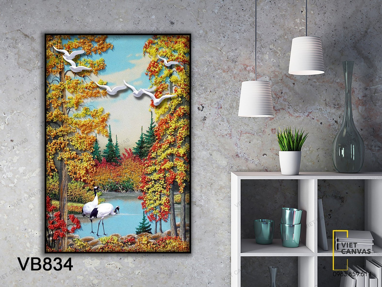 Tranh Đôi Cò Lả Bên Hồ Nước Mùa Thu - VB834