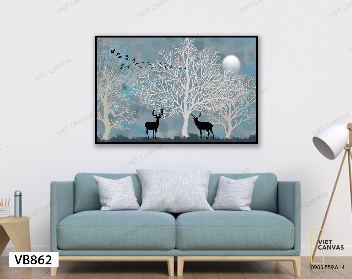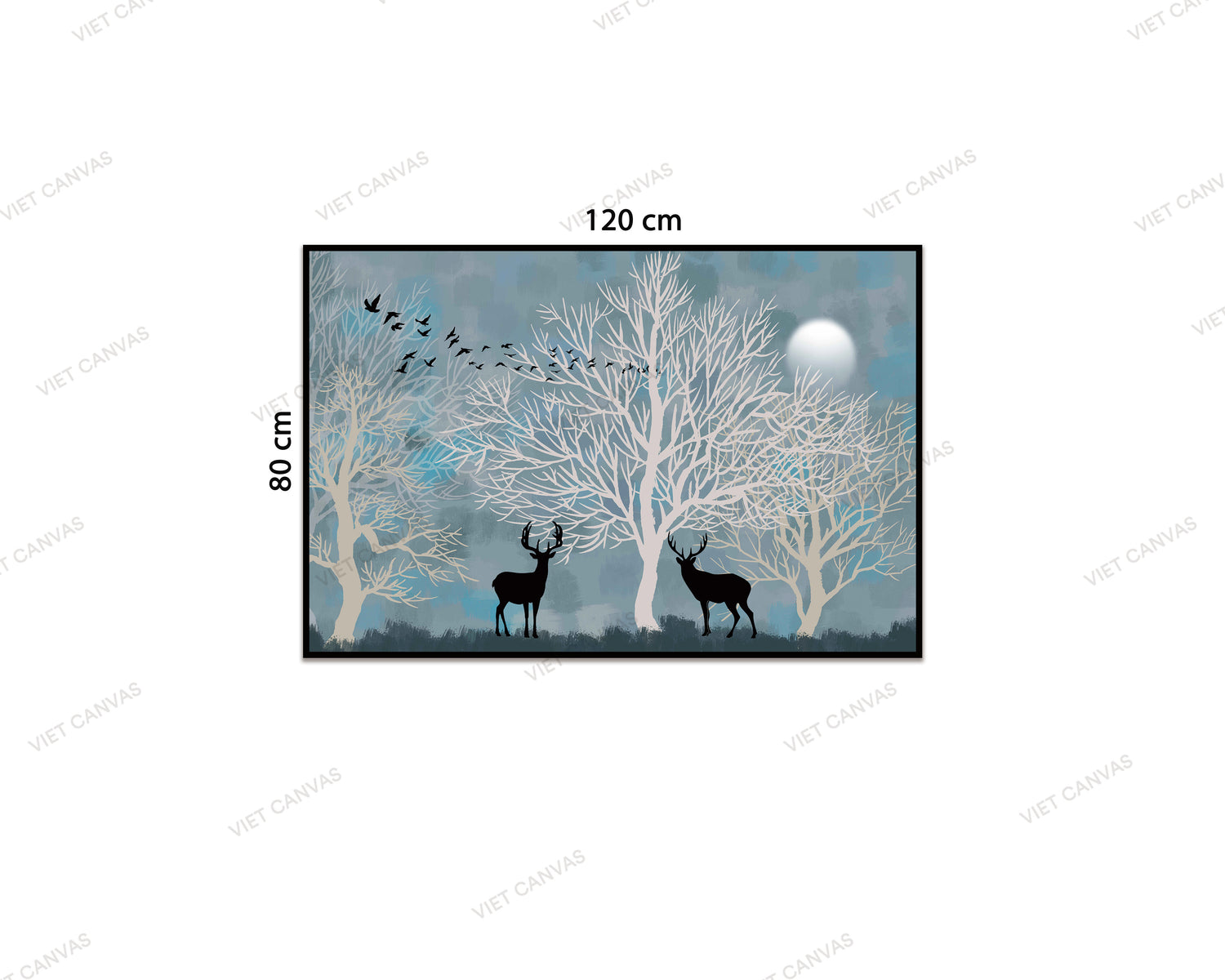 Tranh Đôi Hươu Ngơ Ngác Trong Rừng Đêm Đông - VB862