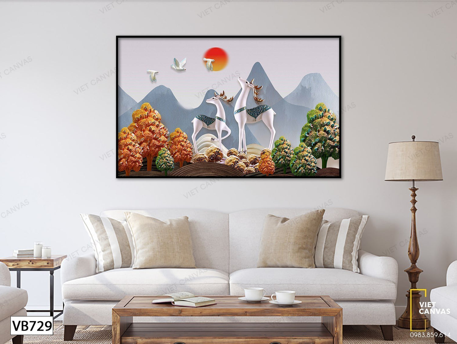 Tranh Đôi Nai Trên Thảo Nguyên 3D - VB729