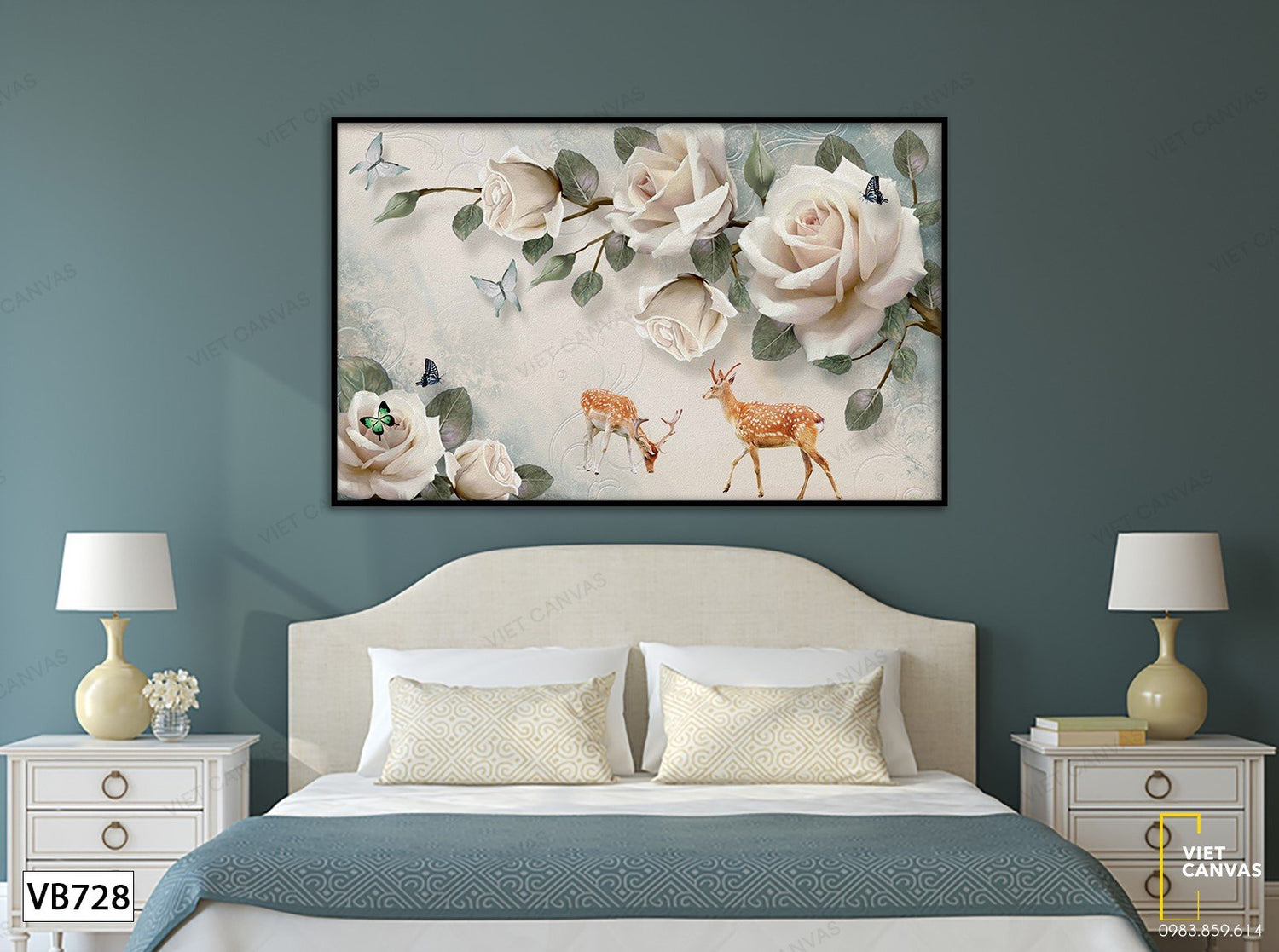 Tranh Đôi Nai Và Hoa Hồng Trắng - VB728