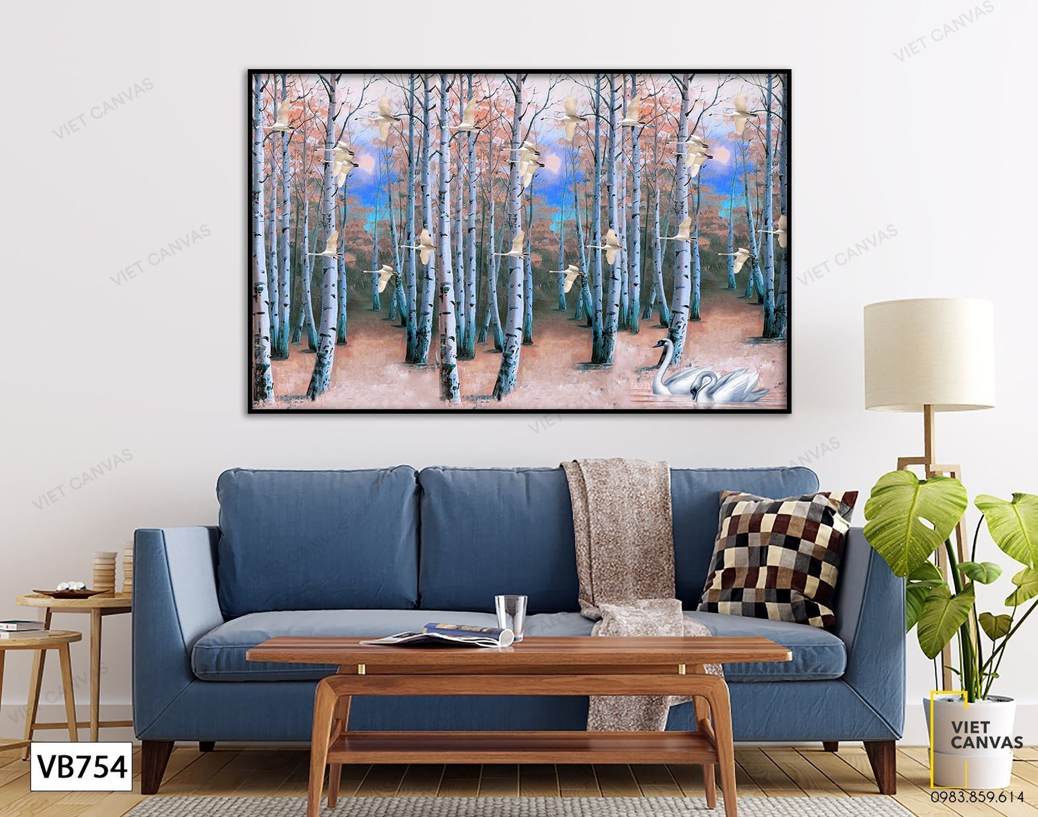 Tranh Đôi Uyên Ương Bên Cánh Rừng Cao Su - VB754