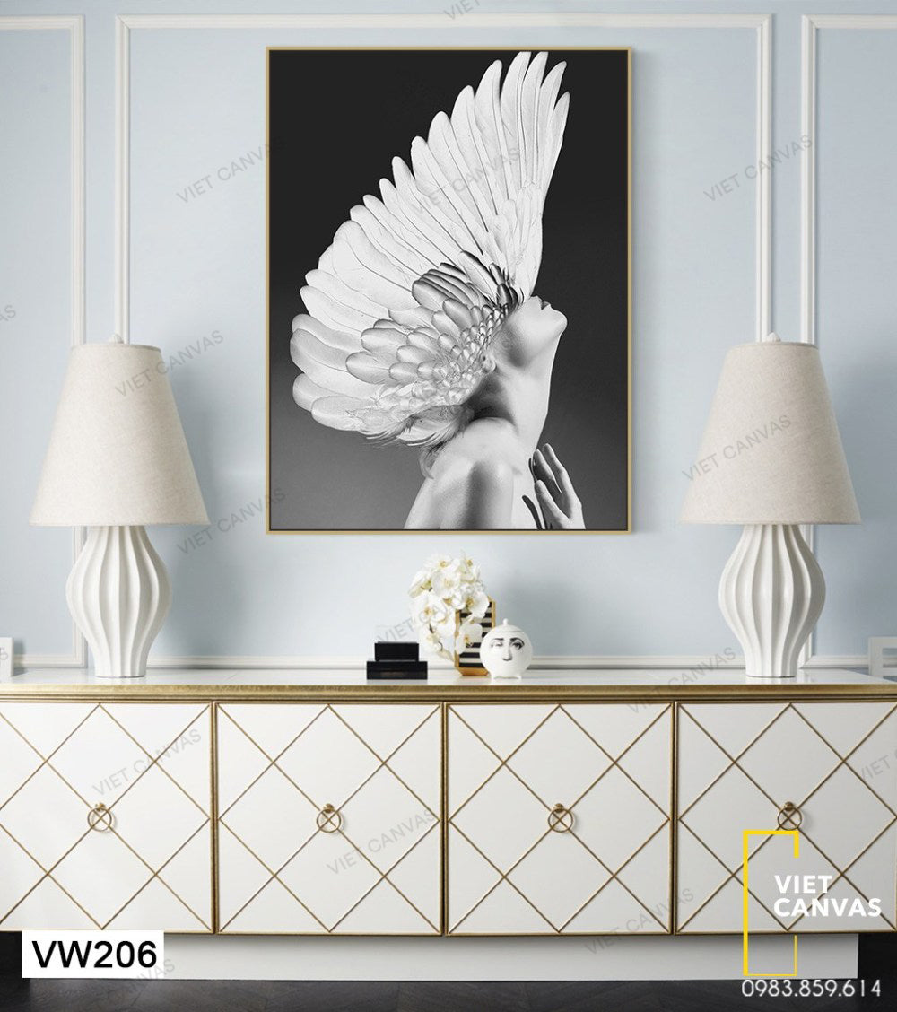 Tranh Khuôn Mặt Cô Gái Ẩn Sau Bộ Lông Vũ - VW206