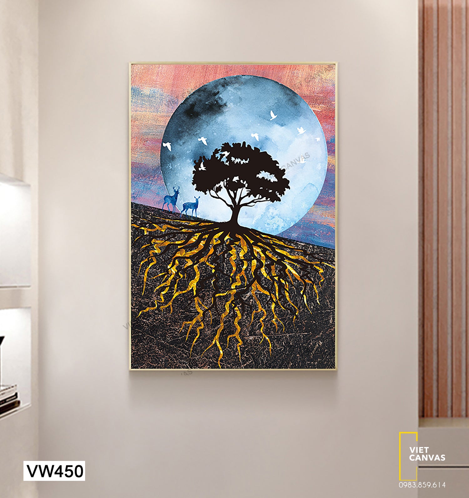 Tranh Mặt Trăng, Cây Và Đôi Nai - VW450