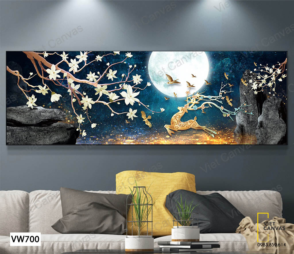 Tranh Mặt Trăng, Con Hươu Và Cành Hoa - VW700