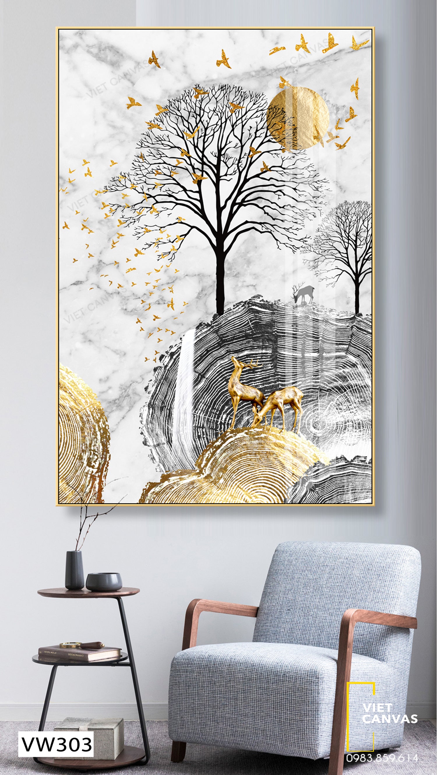 Tranh Nai Rừng Và Chim Trời - VW303