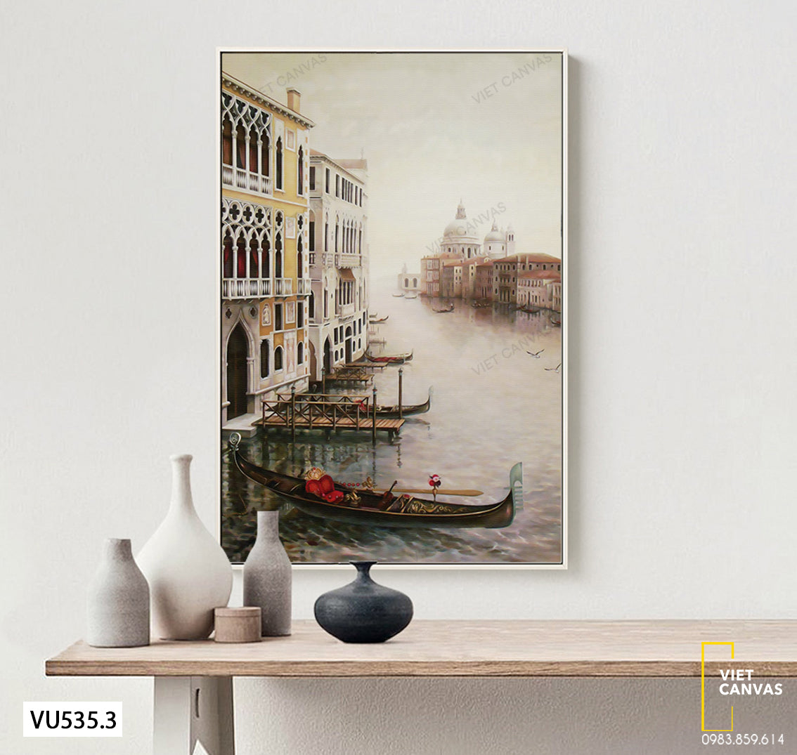 Tranh Nhà Cửa, Dòng Sông Và Con Thuyền - VU535.3