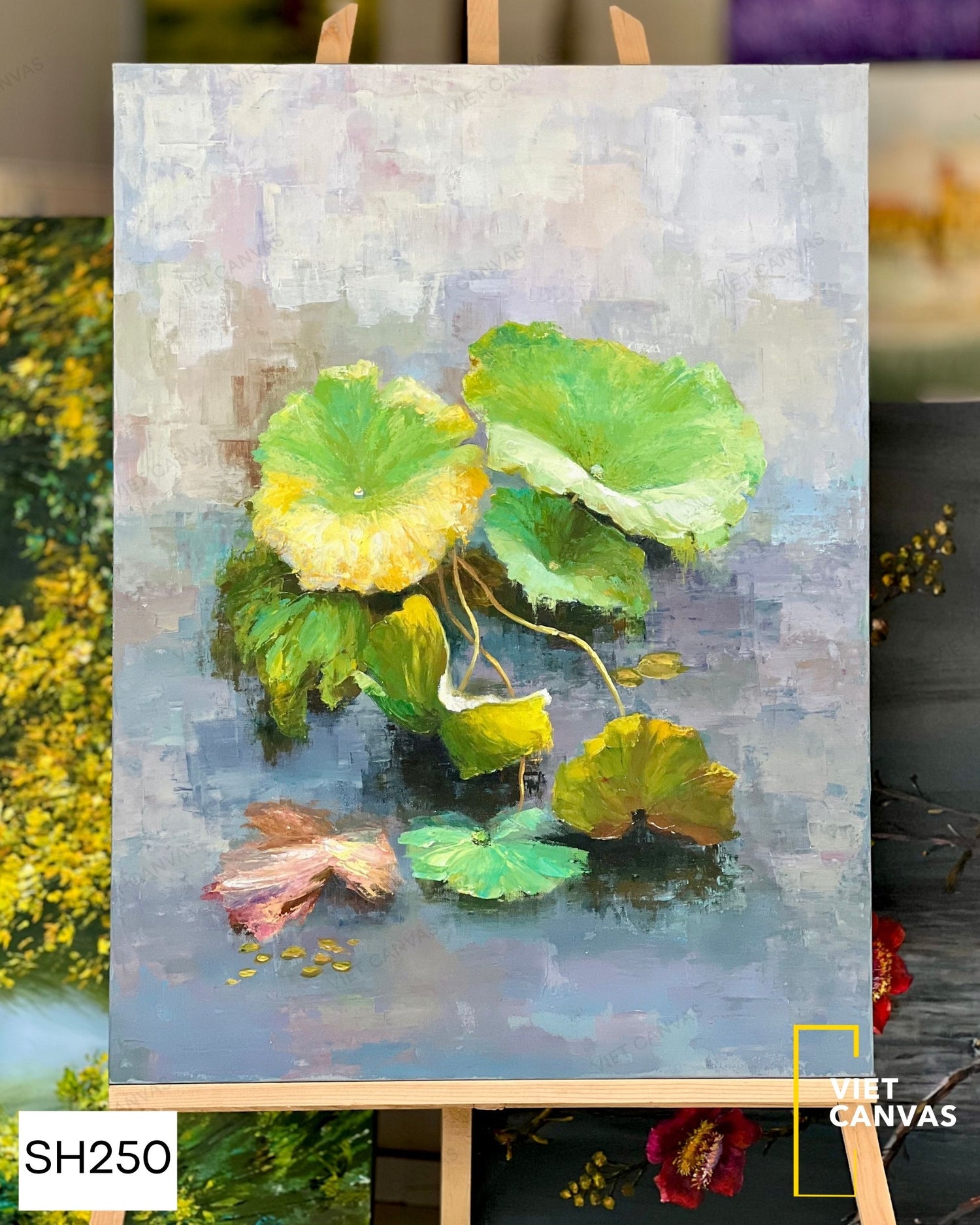 Tranh Sơn Dầu Lá Sen Bên Hồ - SH250