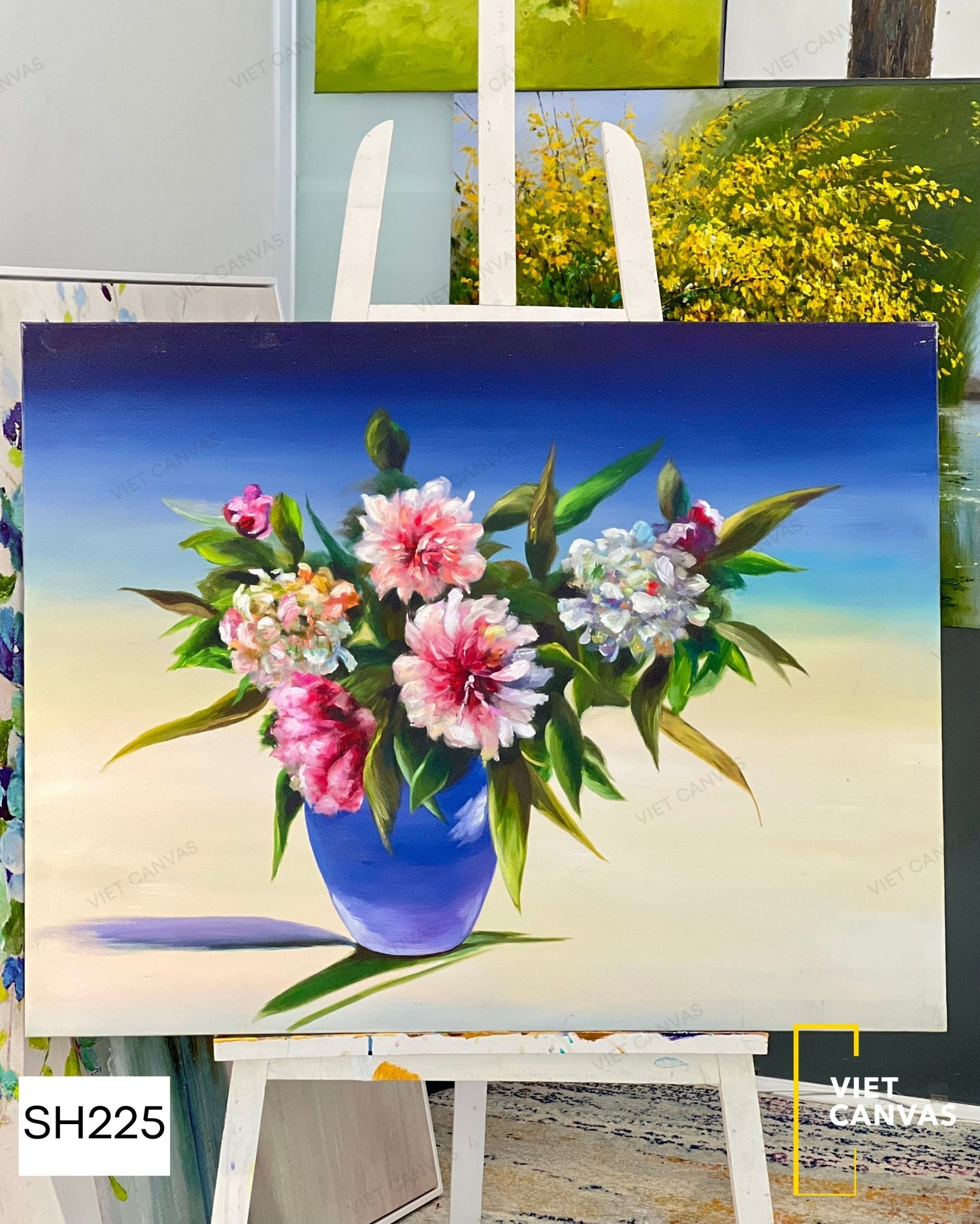 Tranh Sơn Dầu Bình Hoa Mẫu Đơn - SH225