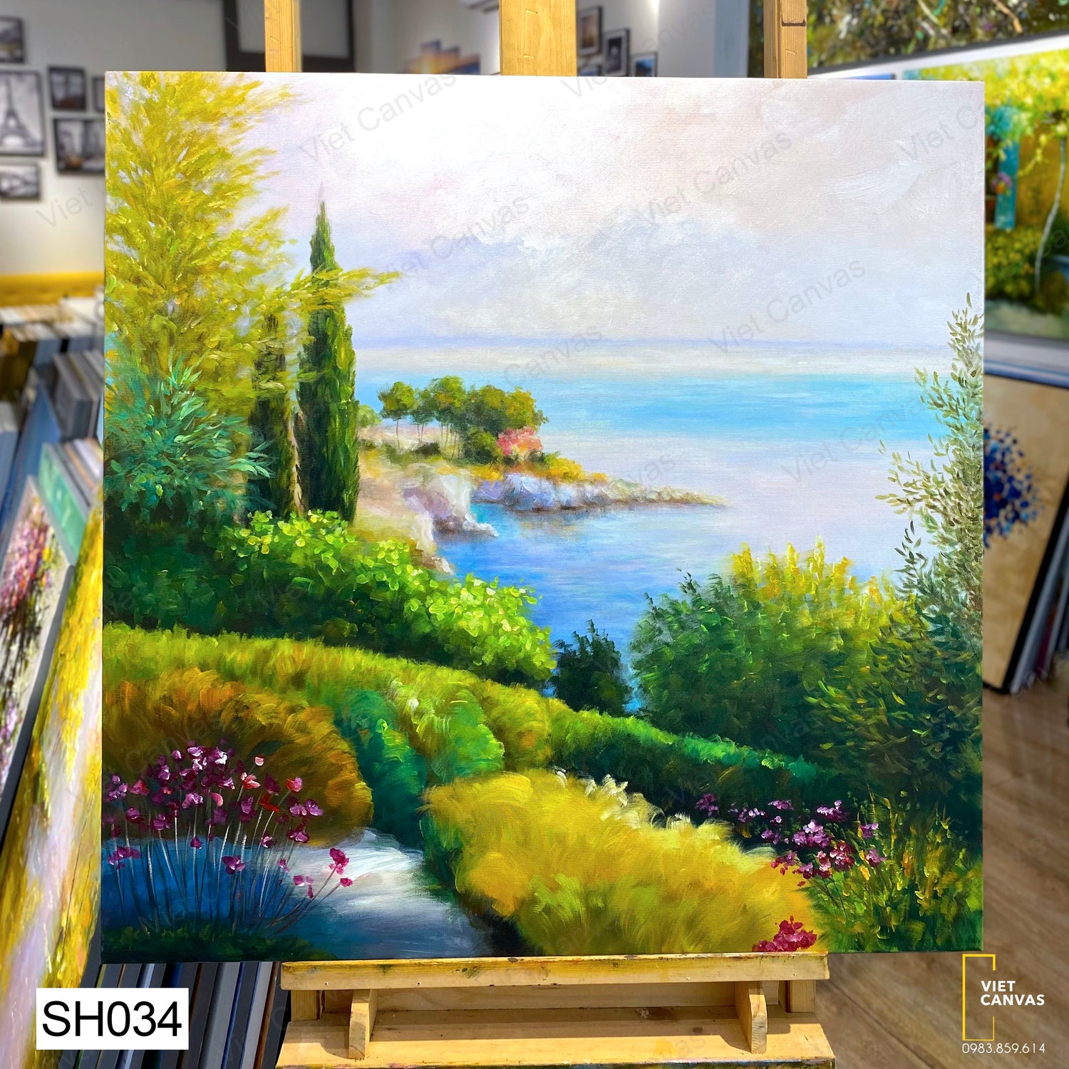 Tranh Sơn Dầu Vườn Hoa Và Biển - SH034