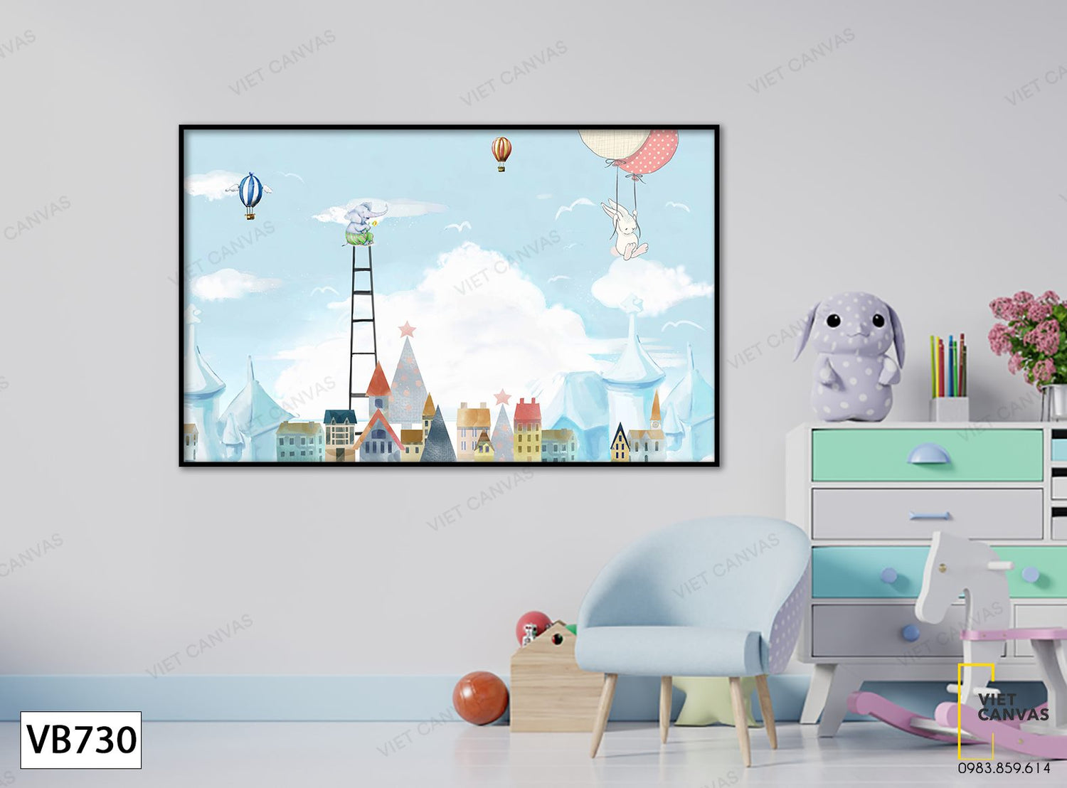 Tranh Tuổi Thơ Của Bé Chủ Đề Trắng Xanh - VB730